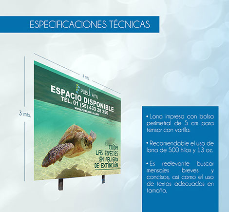 Incluye la fijación, exhibición y mantenimiento de la valla.